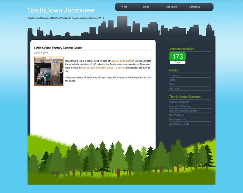 Project: Design a web site for the Southdown Jamboree team to help support they're fund raising efforts for the 22nd World Scout Jamboree, Sweden.